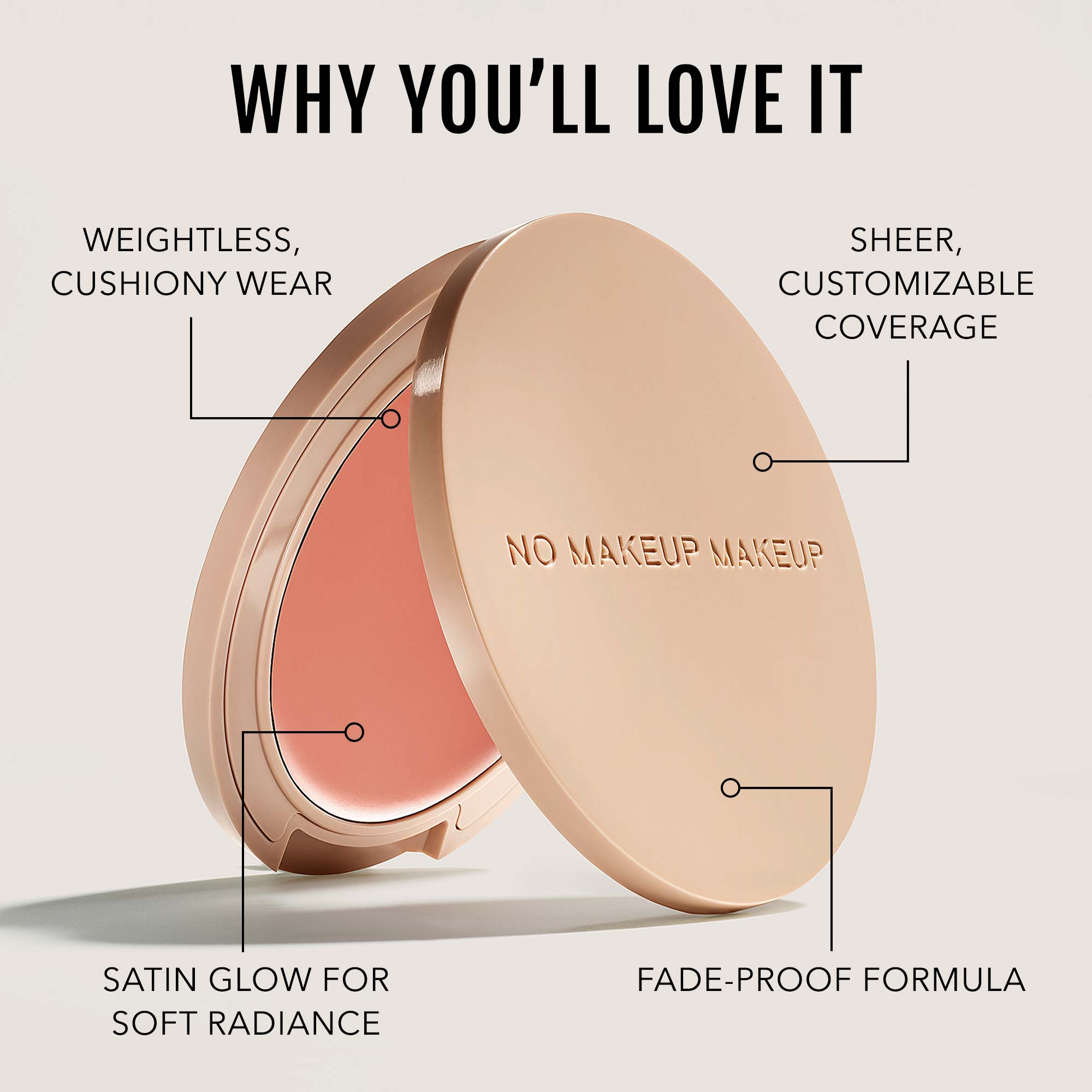 Just like our No Makeup Makeup® Foundation, No Makeup Makeup® Blush & Lip Color is formulated with high quality, clean, vegan, cruelty-free ingredients. We're proudly Leaping Bunny Certified, dermatologist-tested, hormone-disruptor-free, non-comedogenic and free from allergens, animal-derived ingredients, hormone disruptors, mineral oils, sulfates, gluten, talc, PEGs, and parabens.