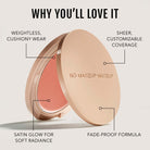 It delivers a sheer wash of color that’s buildable. You can apply one layer for a natural flush or layer more for customizable coverage.