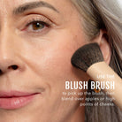 To apply to cheeks, dab onto the apples of your cheeks – do not dig or swish in the compact with our Blush Brush – our formula is concentrated, so a little goes a long way! Then, blend with our No Makeup Makeup® Blush Brush, fingers, or a sponge.