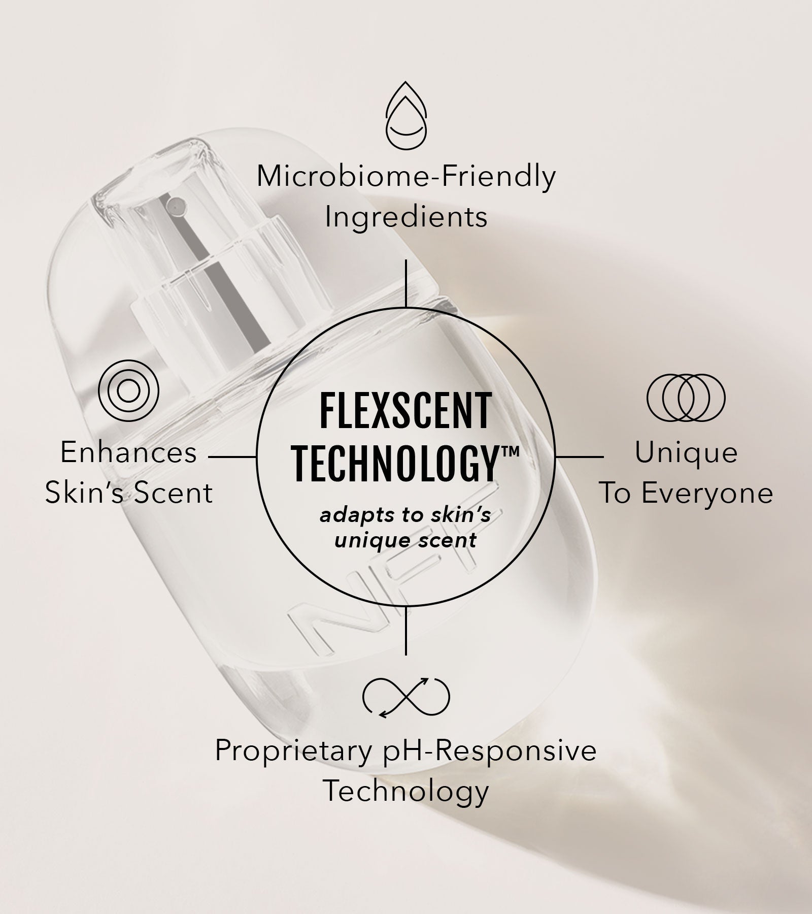 It’s true that every fragrance smells a little different on everyone, but No Fragrance Fragrance™ was built to do that, intentionally. Our FlexScent Technology™ uses adaptive, pH-responsive ingredients designed to interact with your skin’s chemistry, shifting and revealing new dimensions throughout the day. So while most fragrances change by accident, ours transforms by design, becoming a scent that’s uniquely you.
