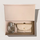 The bottle is a custom-designed object of intention. The rounded bottle — with no beginning and no end — was intentionally created to be more than a vessel. With its tactile divot, it recalls a touchstone meant to be held in the hand, carried with you, and used as a source of comfort throughout the day.