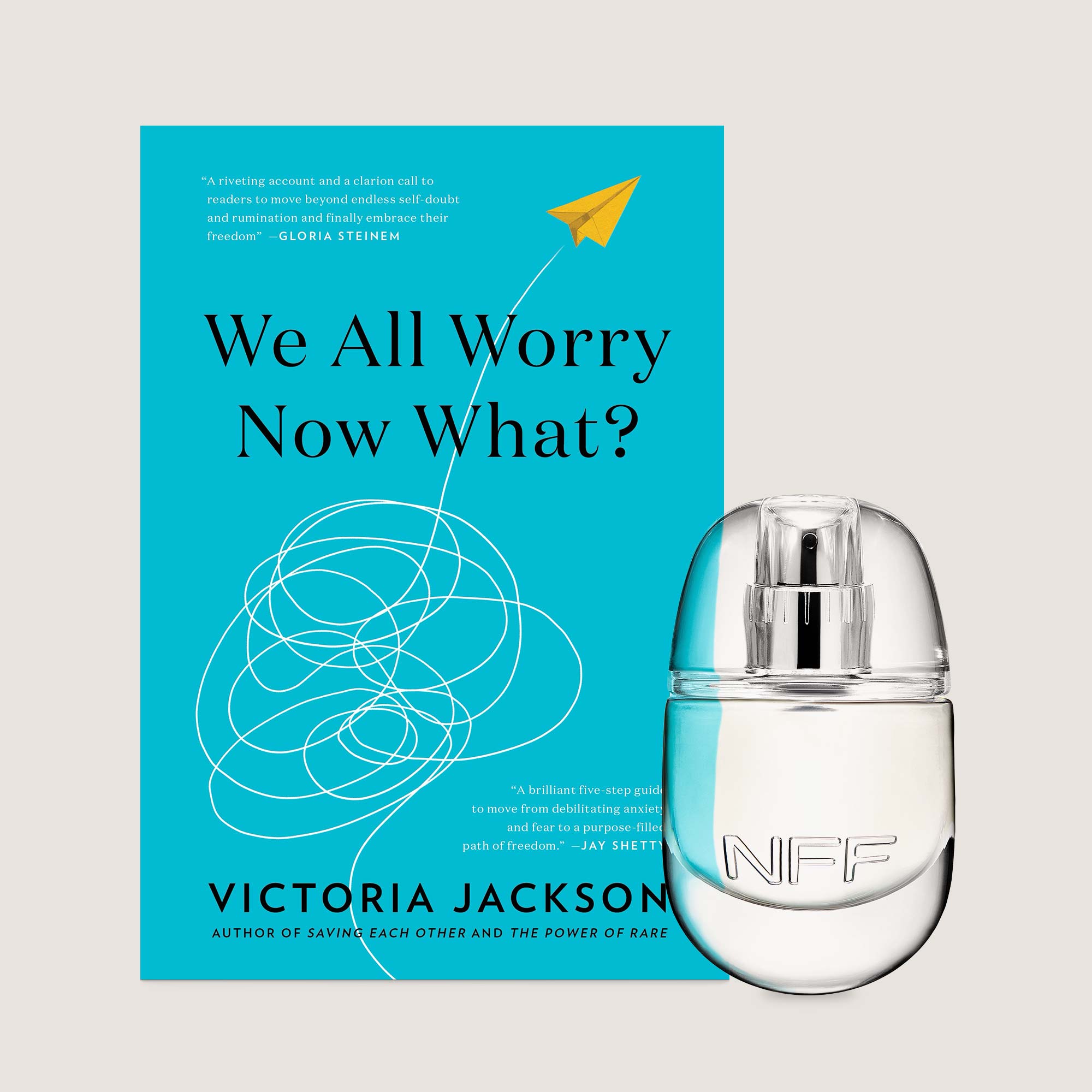 Two powerful tools for grounding yourself in calm. No Fragrance Fragrance™ — a light, clean, skin-responsive essence — invites you to pause, breathe and return to center. Its bottle features a tactile divot inspired by a worry stone, designed to offer a moment of comfort whenever you need it. We All Worry, Now What?, authored by Victoria Jackson, complements the fragrance with compassionate guidance for moving beyond anxiety and overthinking into emotional ease.