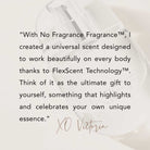 No Fragrance Fragrance™ is built with FlexScent Technology™, a breakthrough composition that allows each note to adapt and evolve with your skin’s warmth, chemistry, and environment.